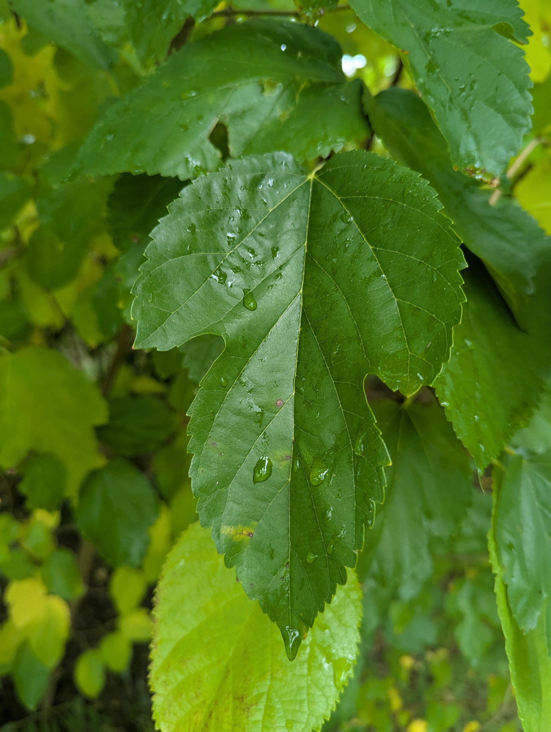Oscar Mulberry is a dual purpose variety offering early fruit & nutritious leaf fodder. Fruits are fantastic, better tasting even than Illinois Everbearing and slightly tart. Oscar mulberries tested 11.9% protein in our tests. Although mulberry leaves have different shapes on the same tree, Oscar mulberry leaves have distinctive three-lobe leaves. Standard sized tree topping out at about 35-40′. Bare root trees 6-8′. Zones 5-9.